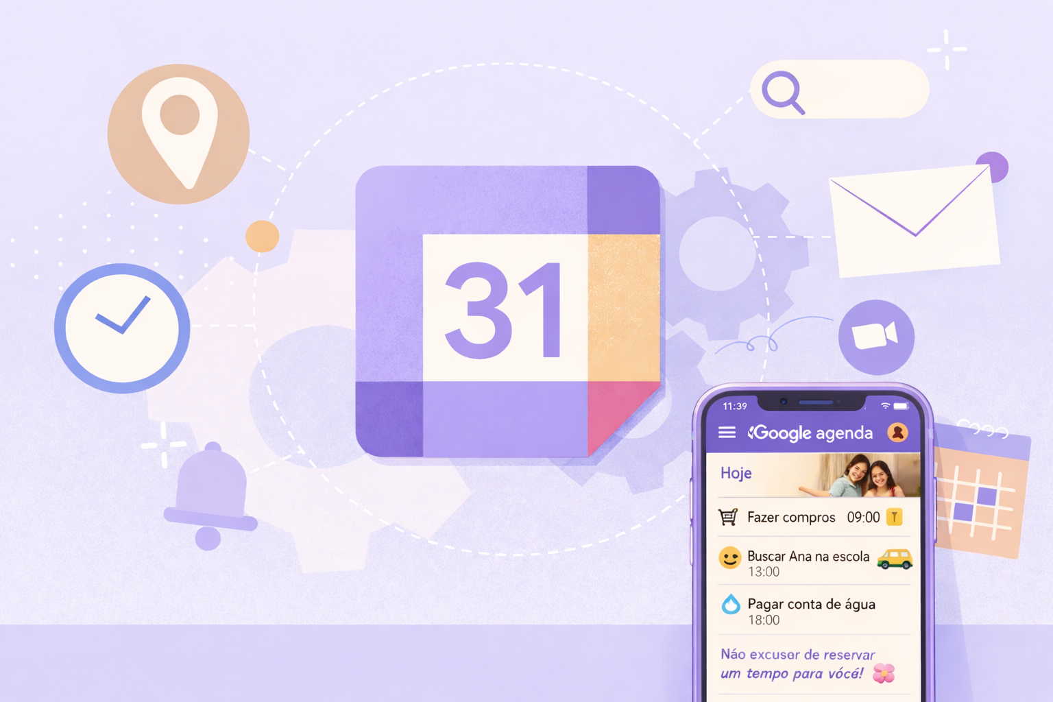 Sua assessora te lembra dos compromissos e contas — todo dia de manhã e 30 minutos antes de cada evento.
